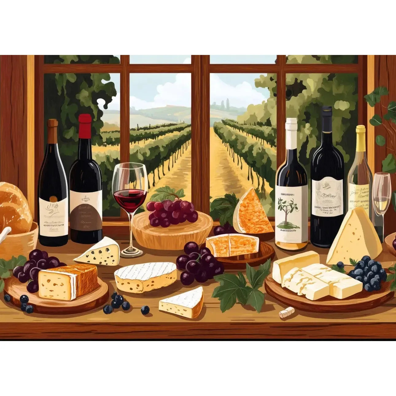 A premium 1000-piece adult jigsaw puzzle featuring a warm food-and-wine still life scene with rich colors and inviting details, ideal for kitchens, dining spaces, and gift shoppers.